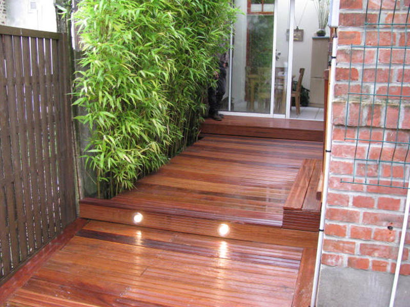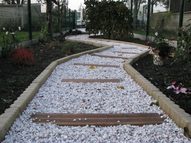 - Association de graviers clairs et de dalles bois pour un rendu moderne